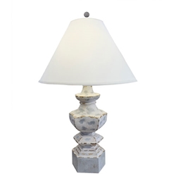 Item No. 692 Pair of distressed White Tole Water Lily Table Lamps with linen shades;