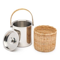 Item No. 593 Woven Rattan covered Ice Bucket with double wall stainless steel insulation and woven handle;